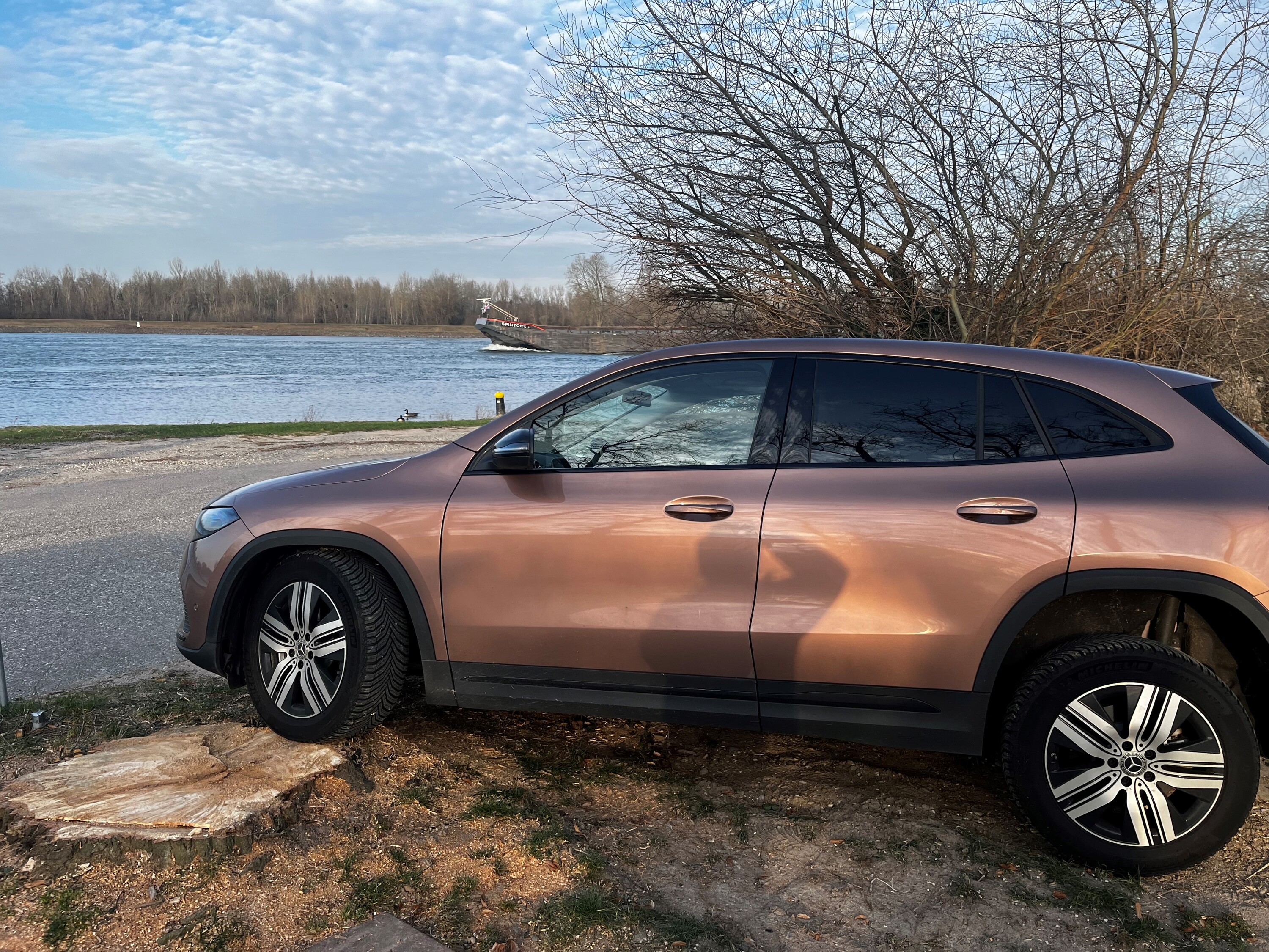 Hallo Heiko, man sieht, dem EQA gefällt es gut am Rhein. Vor etwa 2 Monaten ( beim grossen Schnee ) waren wir ( EQA und ich) in Bühl. Hatte mich gewundert, dass unsere Tochter "Mercedes" mich über Iffezheim über die Grenze fahren hat machen. Wollte vielleicht Ihre Geschwister in Rastatt besuchen? Gruss Frank.
